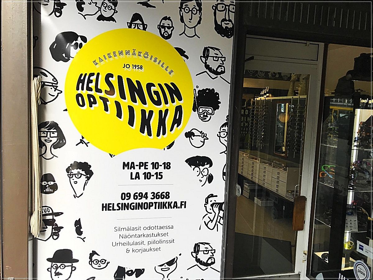 Täyden palvelun optikkoliike Helsingin keskustassa.